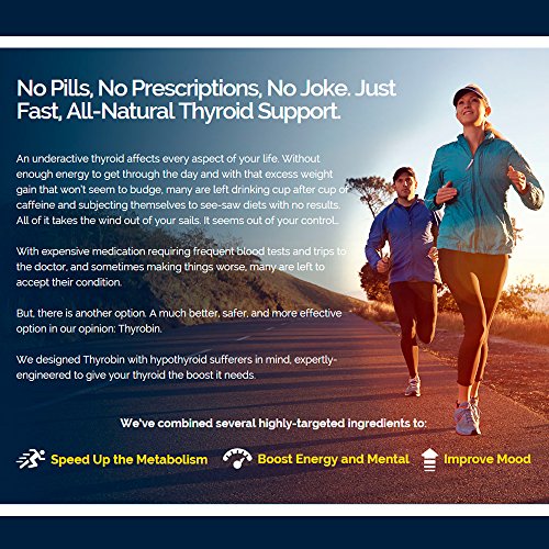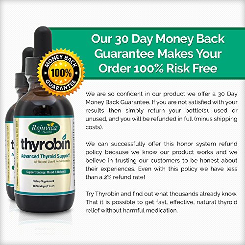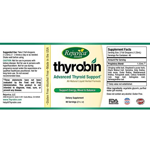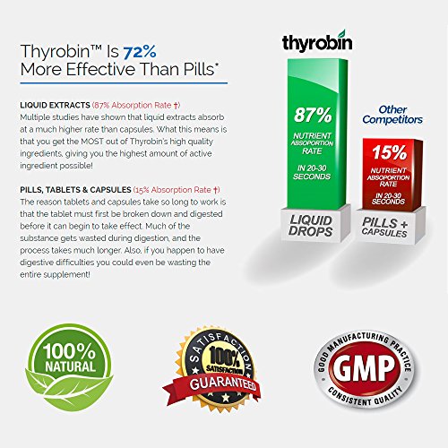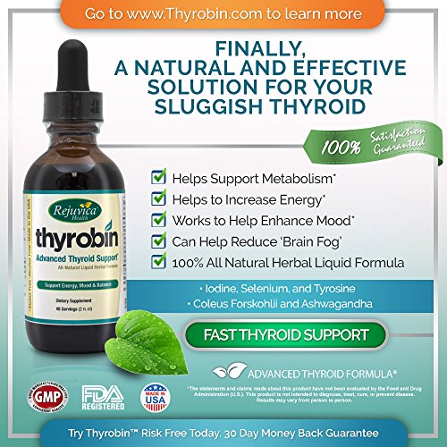 -. Binding : Health and Beauty -. Brand : Thyrobin Thyroid Support -. EAN : 0638845660365 -. Feature : NATURAL AND POTENT THYROID SUPPORT helps address the symp of underactive thyroid, balance thyroid hormone levels, and promote a speedy and healthy metabolism. All the diets and coffee in the world won't make up for an underactive thyroid. / LIQUID FORMULA FOR DOUBLE ABSORPTION! Studies have shown that the body uses 98% of a liquid extract compared to only about 39-53% of a tablet or capsule. Furthermore, 87% of liquid formulas are absorbed in the first 20-30 seconds. Don't waste money on lesser Thyroid Supplements! / SUPPORTS METABOLISM AND WEIGHT LOSS for those with underactive thyroids and those suffering from hypothyroidism. Provides many thyroid-stimulating herbal extracts and nutrients NOT found in the modern diet. / SUPPORTS ENERGY LEVELS AND CONCENTRATION, as well as metabolism and overall sense of well-being, all of which are intimately related to a healthy thyroid and healthy thyroid hormone levels. / ALL NATURAL AND SATISFACTION GUARANTEED: Ingredients sourced from nutrient-dense plants and herbs, and formulated in the United States. 100% no-questions-asked money back guarantee. Send the bottle back at any time to receive a full refund. -. IsAdultProduct : 0 -. Label : Thyrobin Thyroid Support -. LegalDisclaimer : The statements made on our websites have not been evaluated by the FDA (U.S. Food & Drug Administration). Our products are not intended to diagnose, cure or prevent any disease. If a condition persists, please contact your physician. The information provided by this website or this company is not a substitute for a face-to-face consultation with your physician, and should not be construed as individual medical advice. The testimonials on this website are individual cases and do not guarantee that you will get the same results. -. Manufacturer : Thyrobin Thyroid Support -. PackageQuantity : 1 -. ProductGroup : Health and Beauty -. ProductTypeName : HEALTH_PERSONAL_CARE -. Publisher : Thyrobin Thyroid Support -. Studio : Thyrobin Thyroid Support -. Title : Thyrobin Thyroid Support Supplement | Liquid Supplement Boosts Metabolism | Balance Thyroid Hormones | Spirulina, Tyrosine, Coleus Forskohlii, Ashwagandha, Kelp, & More - Made in USA, 100% Guaranteed -. UPC : 638845660365