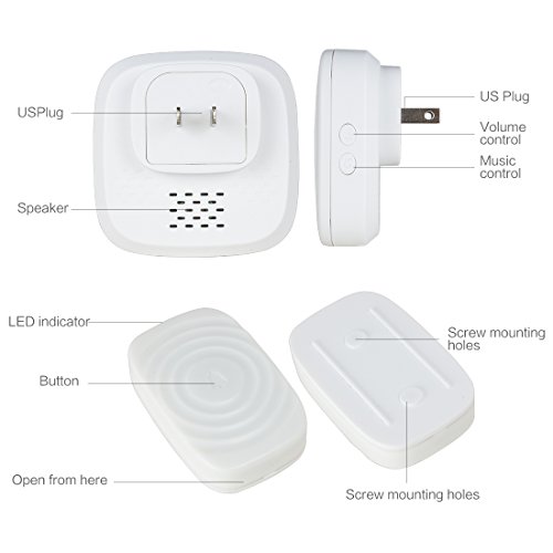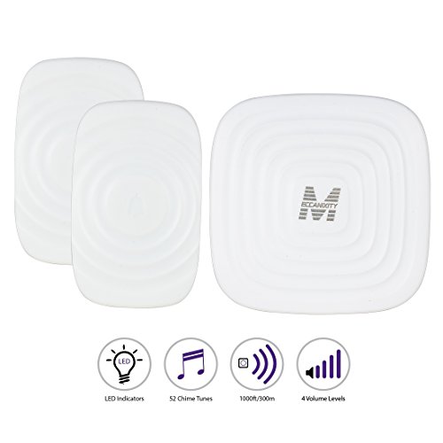Meccanixity US Plug 52 Tunes Music Songs Security Digital Waterproof Wireless Doorbell Kit Cordless Door Bell Chime 1 Receiver 2 Remote Push Button Transmitter
