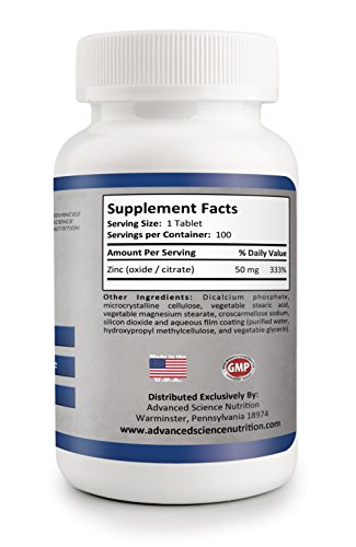 -. Title : Zinc 50 mg Tablets by Advanced Science Nutrition for Immune Support, Hormone Balance, Post-Exercise Muscle Repair, Healing from Common Cold, Testosterone Support in Men