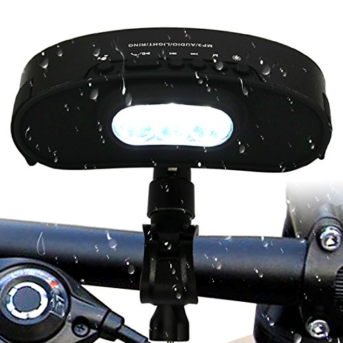 -. Feature : ➽➽➽HIGHLIGHTED➽➽➽:3W high brightness LED lights, can be usedor outdoor lighting.Three adjustable LED light protect your riding safety.Because it charging by USB, So do not worry about it no electricity. The product comes with a battery indication. / ➽➽➽BLUETOOTH➽➽➽: The device wirelessly connects via Bluetooth v4.0 Technology ,so it support hand free talk at a distance of up to 32 feet or 10 meters. Works with any Bluetooth-enabled smartphones,such as IPHONE,MAC,IPOD,MP3 and so on. / ➽➽➽WATERPROOF➽➽➽: Professional IP64 waterproof rating, can be used for outdoor sports.With holder for bicycle, The product can be fixed on the bicycle front. / ➽➽➽DUSTPROOF➽➽➽:Rubber processing oil plus aluminum matt, high-end fashion, non-slip scratch. Because of the metallic speaker grill, Products are equipped with anti-drop effect / ➽➽➽LOUDRINGTONES➽➽➽:Bicycle stand function, can be used for any bicycle frame and humane bicycle bells function .Not only Support micro SD card,but also support FM radio function.