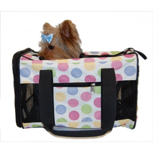 -. Binding : Misc. -. Brand : Anima -. Color : Multi Color -. EAN : 8742780033282 -. Feature : Double handles & a detachable shoulder strap / Removable padded interior bottom pad / Four feet at the bottom of the bag / Leash Tether on the interior / Airline approved, For pets up to 10 pounds -. Label : Anima International -. Manufacturer : Anima International -. PackageQuantity : 1 -. ProductGroup : Pet Products -. ProductTypeName : PET_SUPPLIES -. Publisher : Anima International -. Size : Small -. Studio : Anima International -. Title : Anima International Dog Cat Multi Color Dot Pet Carrier Travel Bag Airline Approved