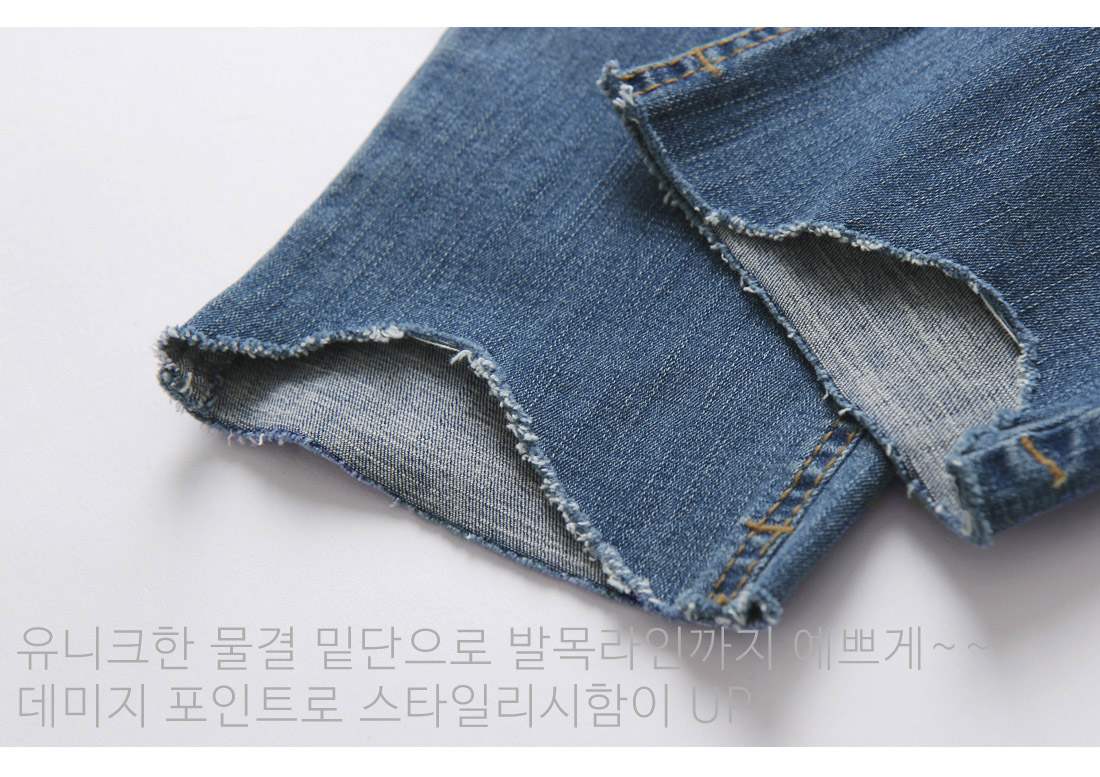 과하지않게 들어간 데미지가 멋스러운 데님팬츠~! 밑단이 물결모양으로 컷팅되어 트렌디함이 느껴져요! 짱짱한 텐션감으로 편안하게 착용할 수 있는 굿아이템 DETAIL세련된 워싱으로 멋스러운 컬러감을 갖고있는팬츠에요데미지 컷팅이 과하지 않게 들어가面서 아이템의포인트역할을 톡톡히 해주었고,앞쪽에 워싱처리가 센스있게 되어있어 예쁜컬러감을 선사해줬어요.물결모양으로 컷팅 되어있는 밑단이 영한 감각이 느껴지고 트렌디해요전체적으로 짱짱한 텐션감이 있고, 허리쪽에 시크릿밴딩이 들어가있어장시간 착용해도 부담없고,활동량 많은날에도 갑갑함 없이 편안하게 착용하실 수 있어요다리라인을 잡아주面서 예쁜핏을 완성해주고,발목까지 오는 길이가 다리를더 길어보이게해주는 효과까지 있답니다. SIZE-TIPS,M,L사이즈로 구성되어 있어요 하단에 있는 사이즈표를 참고하시고 초이스해주세요 COORDINATION팬츠자체에 트렌디함이 있어 심플한 티셔츠와 매칭하셔도 멋스럽게 연출하실 수 있어요셔츠,맨투맨티,니트 상관없이 다 잘 어울리는 데님팬츠랍니다. [ 모델착용 : 청색 , S(55) size ] COLOR VIEW실제 カラー과 가장 가까운 아래 제품이미지를 확인하세요! 모니터에 따라 차이가 있을 수 있습니다.DETAIL INFO