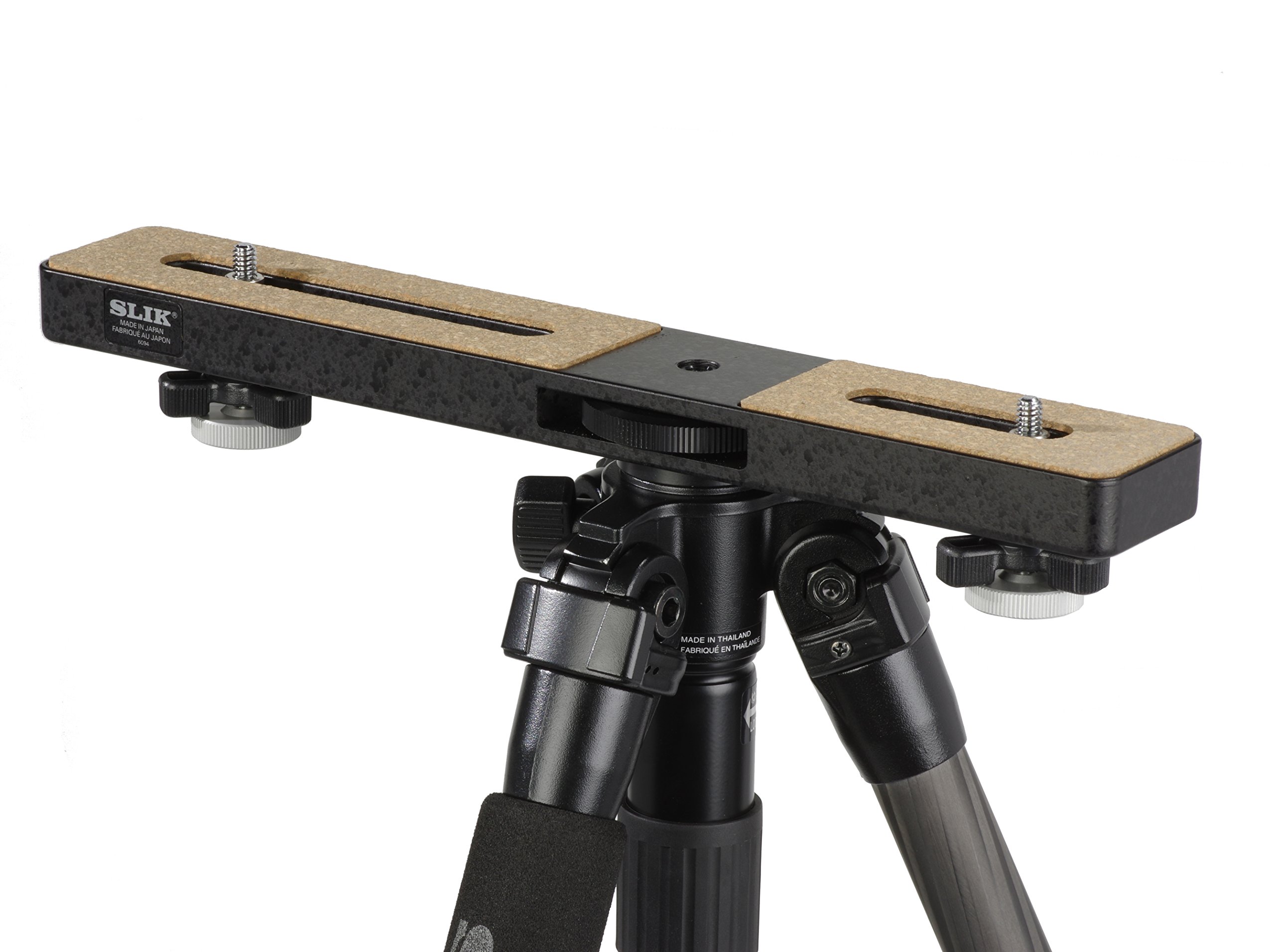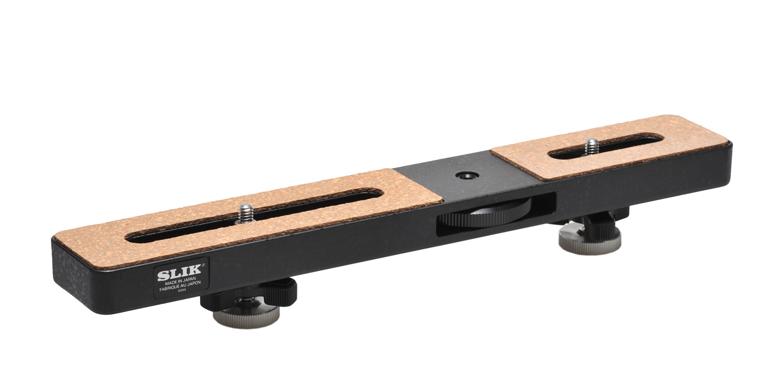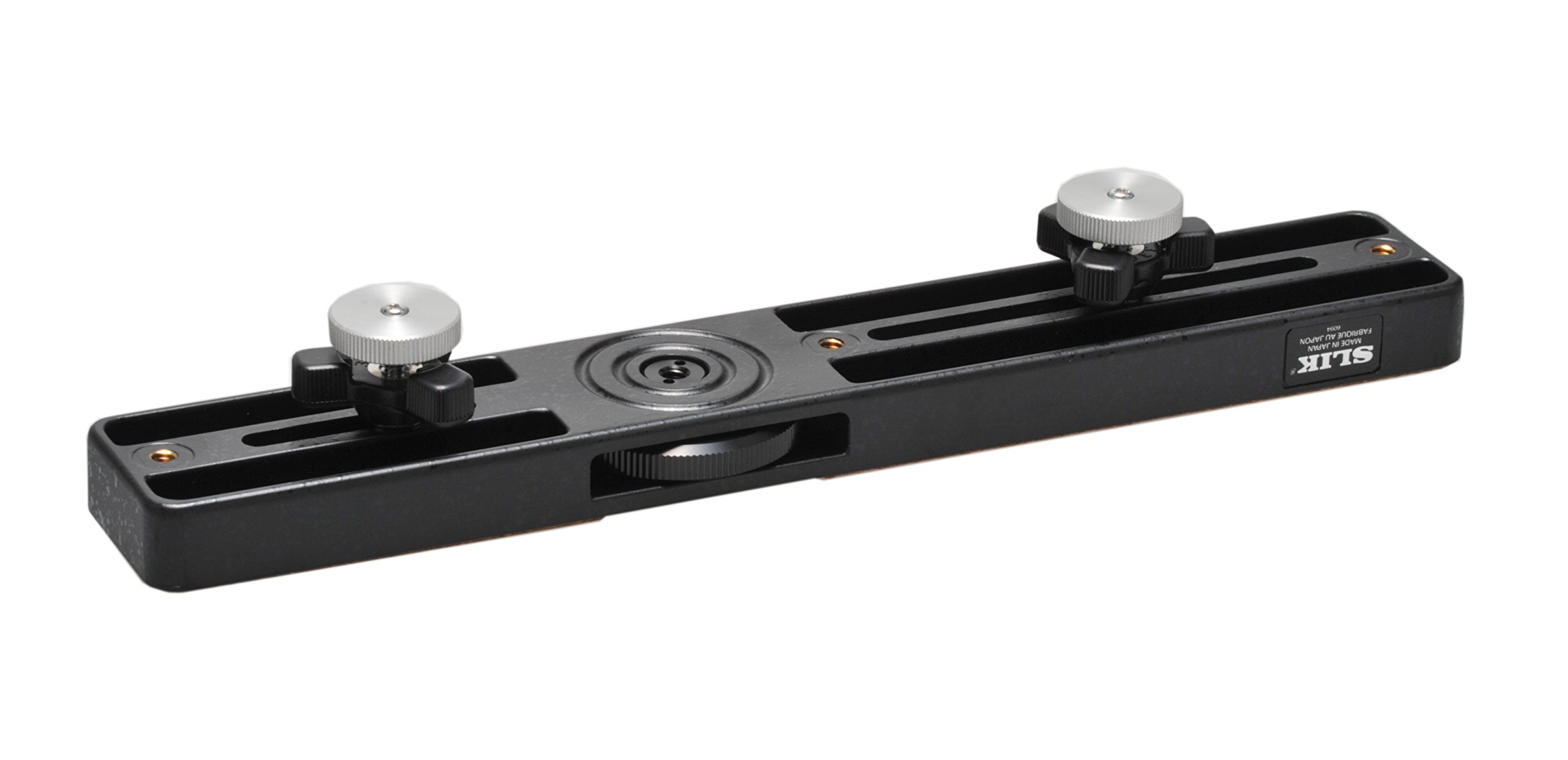 Main tripod mounting screws are not installed in the center so that two different cameras with different weights such as "camera with telephoto lens and camera with wide angle lens" can be mounted and balanced.