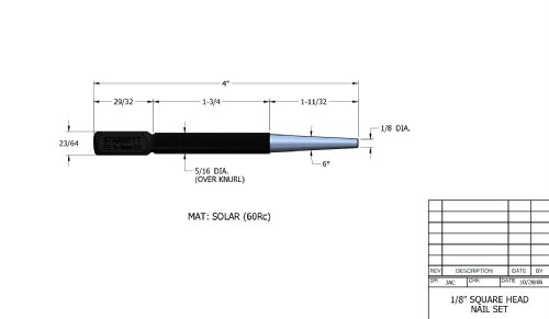 Starrett 800D Square-Head Nail Set Punch, 4" Length, 1/8" Punch Diameter