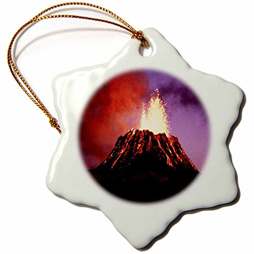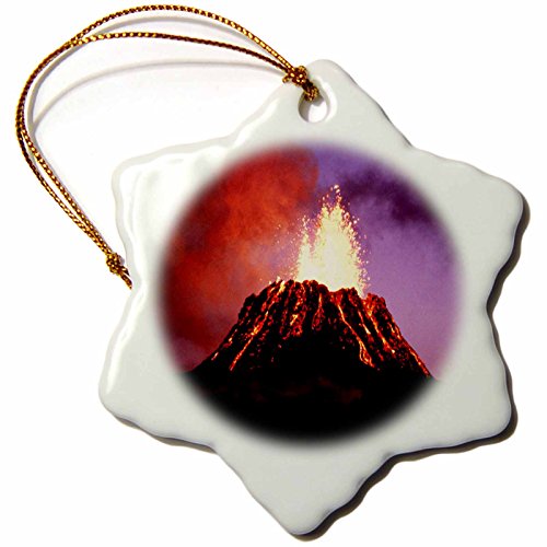 Sandy Mertens Hawaii Volcano Eruption at Night Snowflake Porcelain Ornament, 3-Inch