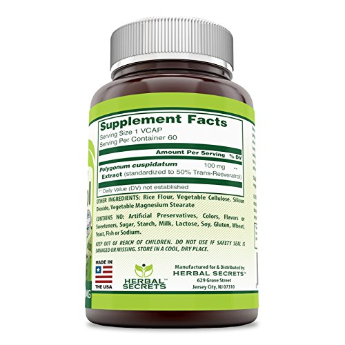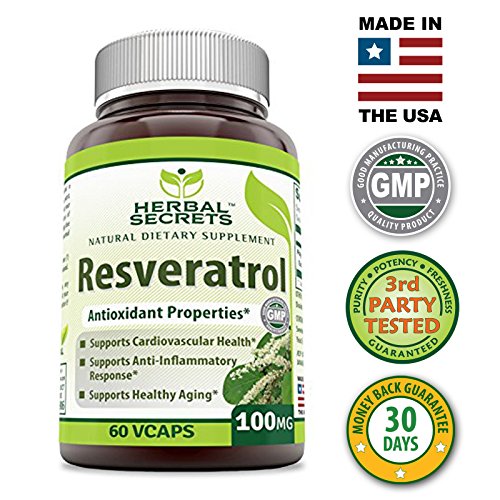 -. Title : Herbal Secrets Resveratrol 100 Mg 60 Veggie Capsules - Antioxidant Properties * Supports Cardiovascular Health, Supports Anti-Inflammatory response and Supports Healthy Aging*