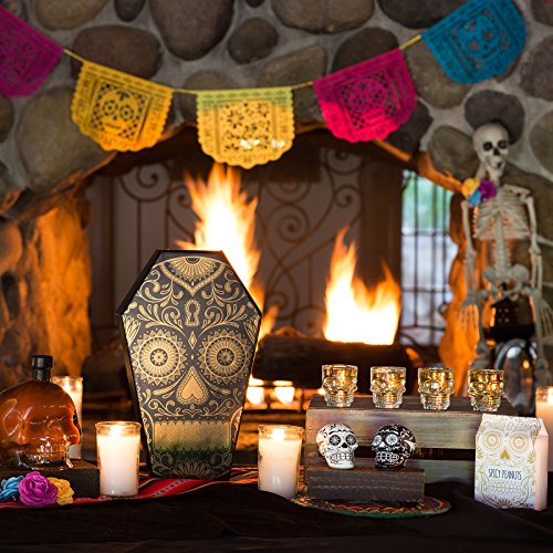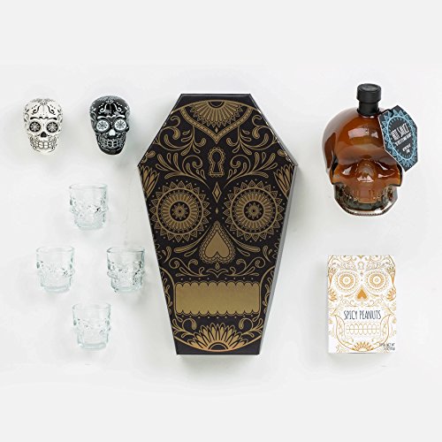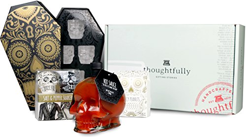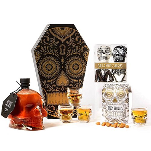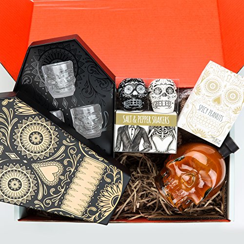 Skull-themed hot sauce, shot glass, and salt & pepper shaker by Thoughtfully