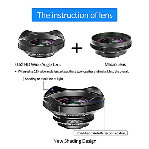 NOTE There is arrow sign on lens to show you how to connect lens and clip, please pay attention if you need help. Please make sure the lens is aligned to the device camera before using. The wide angle lens and macro lens are screwed together but they can be also split apart if you only need one of them.