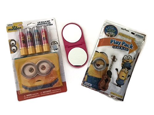 -. Title : Minions Lip Gloss Bundle Mirror Bag Play Pack Stickers Coloring Book Fun Size Crayons