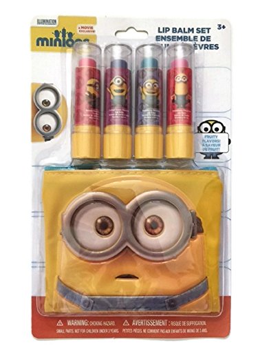 -. Feature : This Minions Lip Gloss Bundle has a lot of fun inside! / Including 4 different flavored lip gloss tubes, with a Minion Bag to put them in. / Also included is a small fold up pink mirror in the Minions Lip Gloss Bundle, it's the perfect size. (2" diameter) / The Minions Play Pack has 4 crayons, 25 minions stickers and a 24 page fun size coloring book. (approx. 4 x 6 inches) / The 4 flavors of lip gloss are Strawberry, Raspberry, Bubble Gum and Cotton Candy, in this Minions Lip Gloss Bundle.
