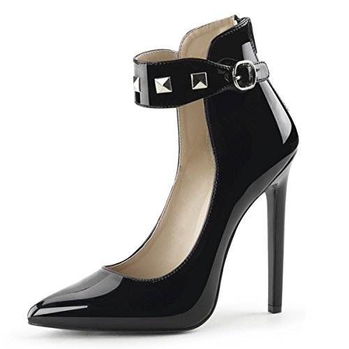 Womens Closed Toe Shoes Black Studded Ankle Strap Pumps Stilettos 5 Inch Heels