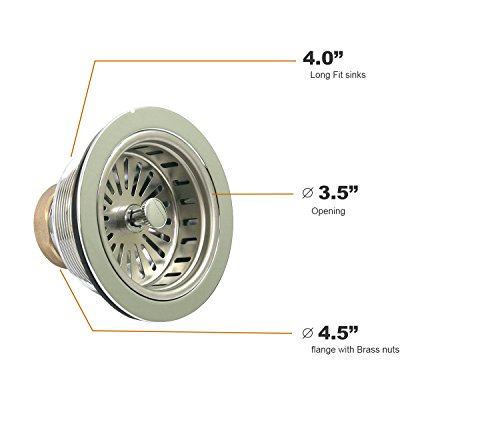 Everflow KOHLER Style Chrome Plated, Brass, Heavy Duty Sink Strainer 7513, Fits Sinks with 3-1/2 Inch, 4 Inch Opening, 4-1/2 Inch Flange with Brass Nuts, Rolled Edge Basket, Heavy Duty Stainless Steel