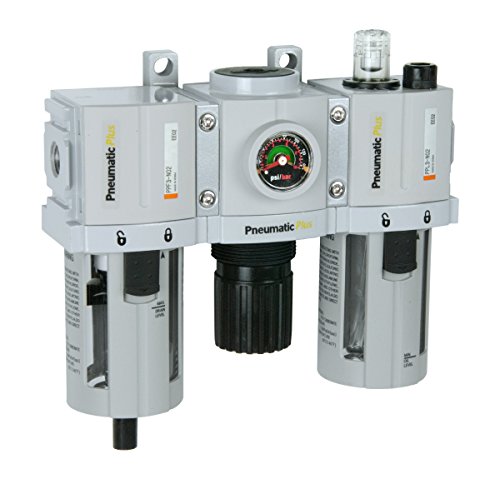 PneumaticPlus PPC3-N02G Compressed Air Filter Regulator, Lubricator Combo, 1/4" NPT (High Flow), 5 Micron, Poly Bowl, Manual Drain, Embedded Gauge (0-140 psi)