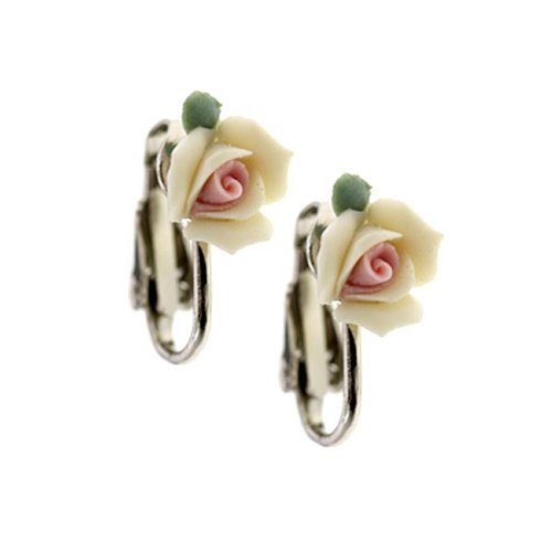 Blushing with innocence and romance, these very delicate earrings will capture you with their sweet charm. A genuine porcelain hand-made rose is featured. Light rose petals are created with an intricate attention to detail, leaving you a beautiful flower that will be admired by all. With a silver tone clip these earrings are a versatile choice for anyone.Feature