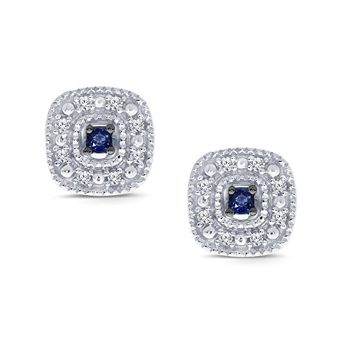 0.10 cttw Round White Natural Diamond with Blue Sapphire Sterling Silver Cluster Stud Earring.
