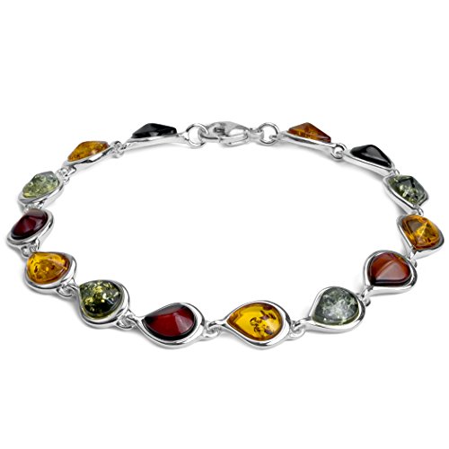 -. Title : Multicolor Yellow Green Cherry Amber Sterling Silver Teardrops Bracelet 7.5