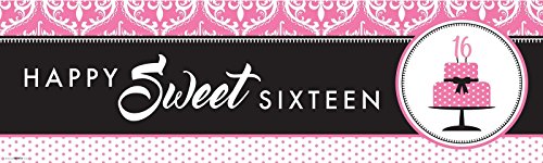 -. Title : Sweet 16 Teen Girl Birthday Party Supplies - Vinyl Birthday Banner 18" x 61"