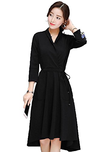 -. Feature : ウエスト部分には細めの腰紐がついており、ウエストを絞りくびれを強調してくれ美しいAラインを作ることが可能です。結び目も真ん中ではなくサイドやバックに来るようになっているので、お洒落でスタイリッシュに決めることができます。紐先端についているシルバーのレットが、さり気なく光り輝き高級感を漂わせます。 / スカートの裾部分はアシンメトリーとなっており、前が少し短めですので歩きやすいデザインとなっています。スカートの両サイドにはポケットがついていますので、ちょっとそこまでお出かけという時にも実用性を発揮してくれます。外出時にはストレスなく快適に着用していただけます。 / 肌寒い季節には、キャメルやベージュのフレンチコート・丈の長いコーディガンで合わせるとふんわり感が出て女性らしいコーディネートを楽しむこともできます。ボレロやショート丈のジャケット等と合わせていただくと、きちんと感が出て気品のある落ち着いた印象を演出してくれます。 / シンプルで上品なデザインですので、フォーマル・セレモニーシーンから彼とのデートにも活躍してくれます。袖にはファスナーがついており、袖に大事なネイルが引っかかり割れてしまう等の心配もなく楽々と着用して頂けます。袖元には蝶々のアップリケがついており、手元を華やかに飾ってくれます。上品なオトナコーデのアイテムとして、いかがでしょうか。 / スレンダーな美シルエットが作れる、カシュクールロングワンピースです。ブラックカラーはボディラインを引き締めてくれますので、着やせ効果でスレンダー、脚長美脚に魅せてくれます。※海外品のため小さめのお作りになっております。普段着ているサイズより2サイズほど大きいものをおすすめいたします。細身の方も普段着ているサイズより1サイズ上をおすすめいたします。