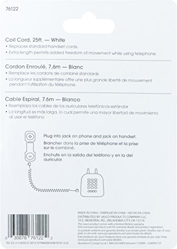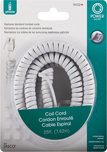 Power Gear Telephone Coil Cord, 25 Feet, White, 76122