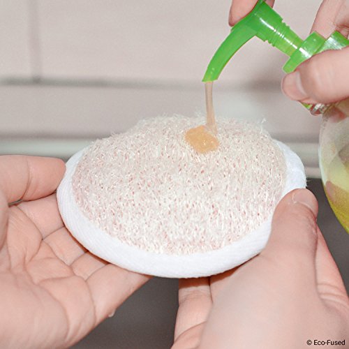 ⭆ First, wet the loofah pad with warm water. The more water you add, the softer the loofah pad will get. If you let it dry, the material gets harder again. This allows you to choose the scrubbing texture you prefer.