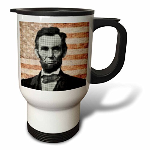 3dRose President Abraham Lincoln Design Using Pixel Effect, Stainless Steel Travel Mug, 14-Oz