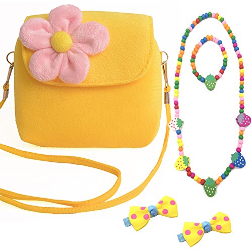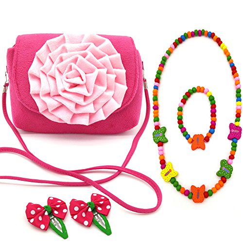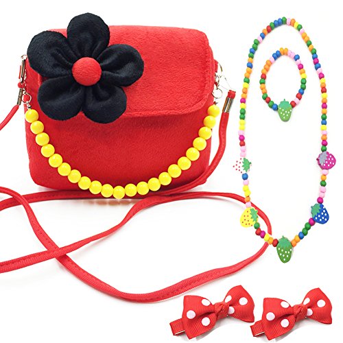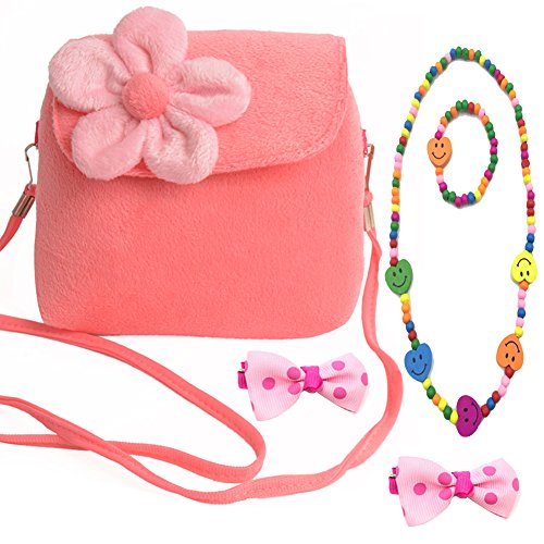 The best gift you princess, popular children's bags Little Girl Plush Handbag + 2 bow-knot Hair Clip + Necklace + Bracelet Set. An awesome value pack made especially with your pretty girl in mind.
