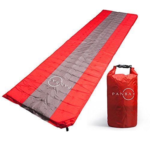 Studio : Panbay Publisher : Panbay Product Description WOW THIS PREMIUM, PLUSH SELF INFLATED SLEEPING PAD provides the ultimate comfort when sleeping outdoors. Perfect for camping, hiking, travel, and enjoying nature. Also great for placing near the pool for tanning. This feels so good you'll wonder how you ever camped without it. AUTOMATICALLY INFLATES WITH THE FREE FLOW AIR VALVE. Simply twist the compact plastic valve and watch the pad inflate itself. Only takes about 90 seconds. If you want your pad to be more supportive, simply blow a few puffs to fatten it even more. The special tufted design adds to comfort. Uninflated this pad is compact and easy to fold at 13 x 8 x 6 Inches. Inflated it's a nice, fat, well padded 71 x 24 x 1 inch inch thick. MADE WITH SOFT RUGGED NYLON the same material used in premium tents and camping equipment. This is an extremely durable material that won't rip, tear, or fall apart. It's also quite weather and water resistant. Get caught in the rain? No problem. This pad will dry quickly. Also protects you from cold, wet ground for a comfortable night's sleep. 100% MONEY BACK GUARANTEE ensures this will be your best bet for a no-risk purchase. Many customers love this pad so much they return to buy 2 or 3 more for the entire family to enjoy. HURRY AND BUY NOW while we have a new shipment in stock. These make a much appreciated gift for friends, family, and co-workers. 0