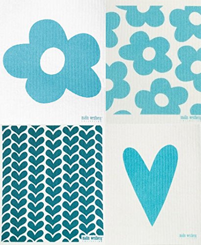 Swedish Dishcloth, Set of 4 light & dark Turquoise (LD) Designs