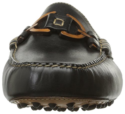 Product DescriptionThis driving moccasin has either a calfskin upper (black and brown) or suede upper with calfskin keeper . iconic dacio bit ornament . leather lined with rubber driving moc outsole.0