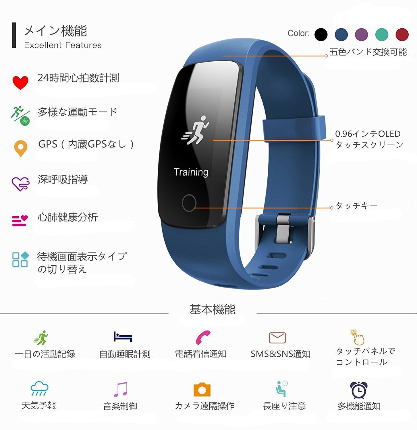 : Smart bracelet body, Japanese-English instruction manual, customer support