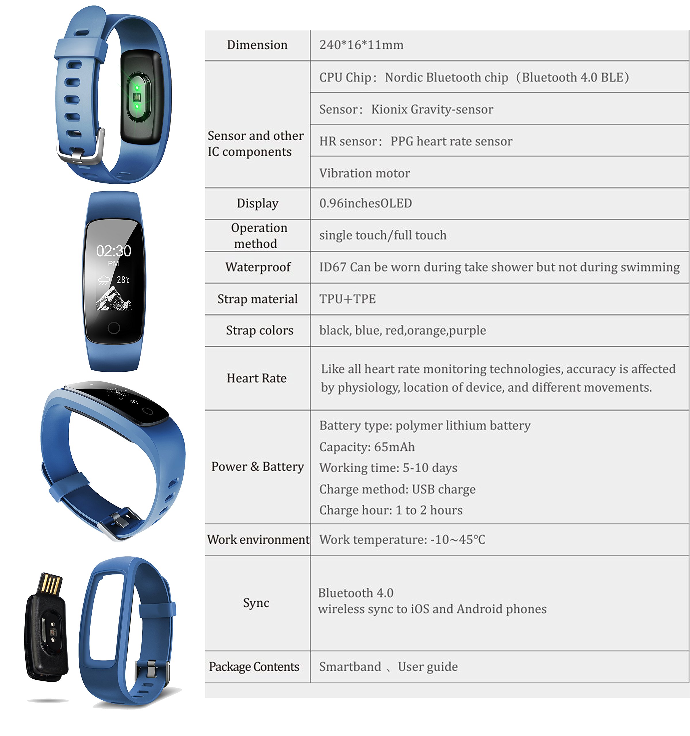 The IDOOSMART wristband carries a high-precision motion sensor and measures the time and wake-up time of each sleeping stage.