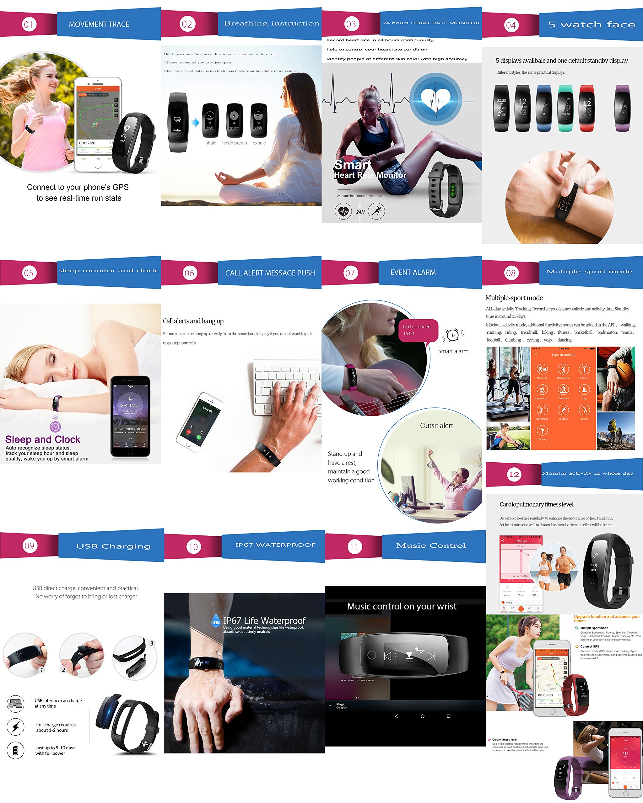 : Automatically measure continuously with a wristband type heart rate meter, maintain exercise intensity with accurate calorie consumption calorie.