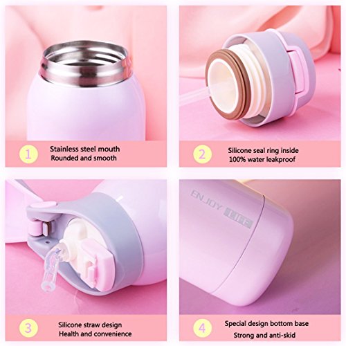 + Stylish water bottle built with double-walled, vacuum-insulated. + Mini plus size (260ml 6.5x16.5cm) and light weight (220g) sweet shape for babies or girls.+ Lightweight design, perfect for your gym bag, car, bicycle and backpack to enjoy your long hikes, trekking, hot yoga class, long load trip, or any other outdoor activities.