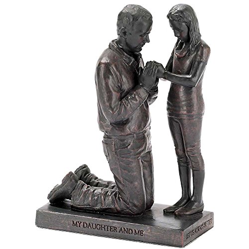 Daughter and Me Praying Dad and Child 5 inch Gray Resin Stone Table Figurine