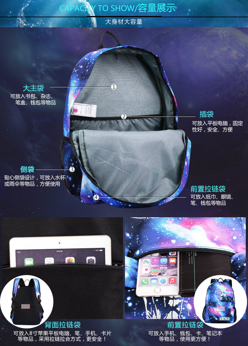 韩版休闲星空夜光双肩包男背包帆布高中学生学院风开学书包女潮流