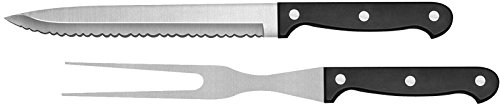 Ginsu Essential Series 2-Piece Stainless Steel Carving Knife Set – Cutlery Set with Black Kitchen Knife and Fork, 04802DS