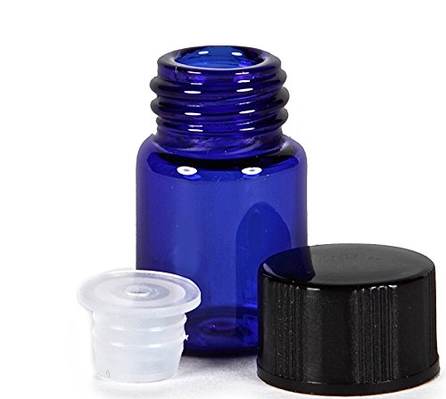 24, Cobalt Blue, 2 ml (5/8 Dram) Glass Bottles, with Orifice Reducers and Black Caps