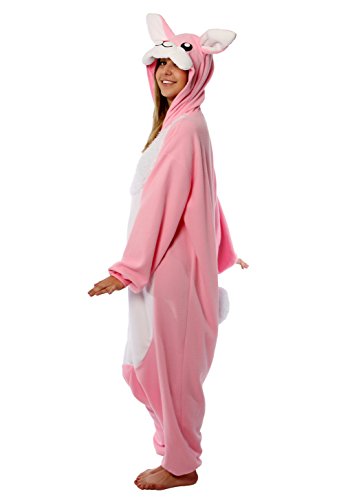 Jump into this cute Rabbit Kigurumi and take flirty style up a step. Bright pink with floppy ears, fluffy chest and red nose, you'll feel splendidly cute while enjoying the comfort of this loose-fitting costume. This fabulous frock makes perfect Spring Break attire when you're out on the town or cozy pajamas when you're spending Saturday night at home with popcorn and a movie.Feature