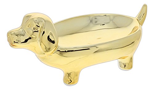 -. Title : Drew Derose 7.5" x 4.75" Ceramic Gold-Toned Dog Shaped Soap Dish