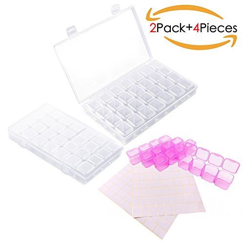 2 Pack 28 Grids Diamond Embroidery Box Diamond Painting Rhinestone Accessories for DIY Art Craft Adjustable Storage Boxes with Label Sticker
