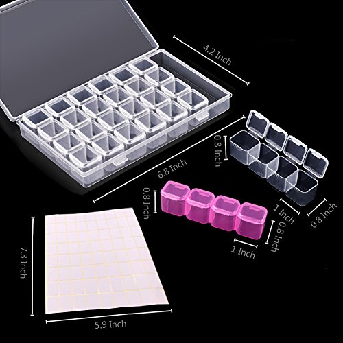 - 【INDIVIDUALLY DESIGN & EASY TO STORE】Designed with 28 mini compartments. The diamond embroidery box contains 7 rows of 4 grids, each row are separated, the outer box and grids can be used separately.