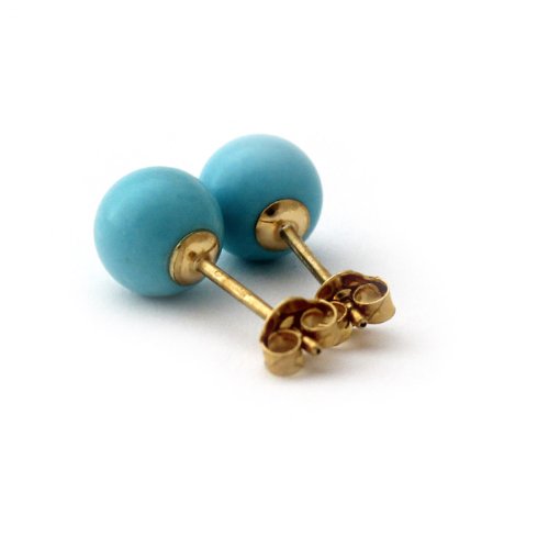 - Feature : These earrings are made of solid 14k yellow gold and turquoise stones. / Earrings available in 4, 5, 6, 7 or 8 mm width. Posts are 9 mm long. / Earrings are come with little 14k gold push backs, a gift box and free shipping.