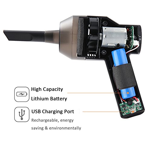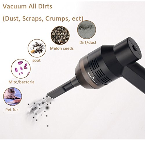 - Rechargeable Vacuum: Built-in 2000mAh lithium battery, rated output power is 5W (larger power than other wired mini USB vacuum), can work up to 50 minutes continuous after full charged.