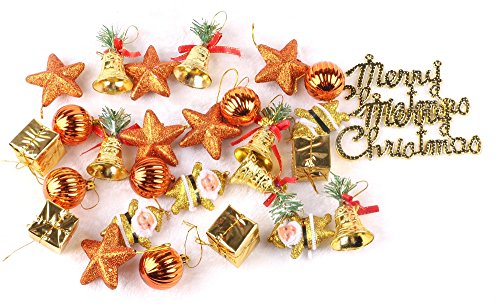 Set of 28 Assorted Shatterproof Christmas Tree Decorations Hanging Ornaments Set Baubles Pendants With Reusable Gift Box For Xmas, Holiday and Party (Copper)