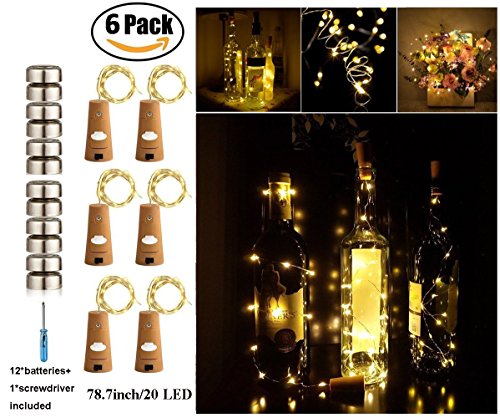 20-LEDS 6 Pack Bottle Lights-ANTTAA Cork Lights with Screwdriver Pro Spark I Cork Shaped Battery Strip Light Rope Lamp For Christmas Tree Decoration Holiday Party Wedding Concert Festival (Warm White)