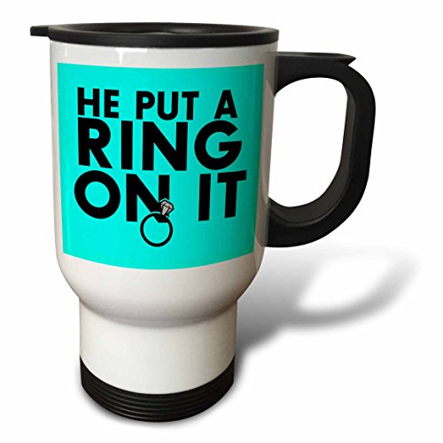 3dRose tm_194347_1 He Put a Ring on It Aqua Travel Mug, 14 oz, White