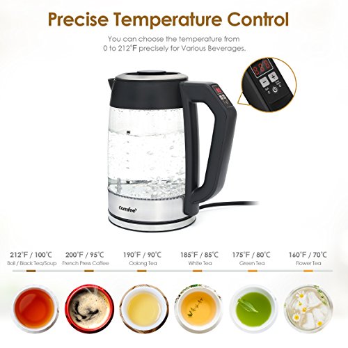 Digital control Handle with variable temperature options for different kinds of tea. Integrated removable tea infuser for convenient use