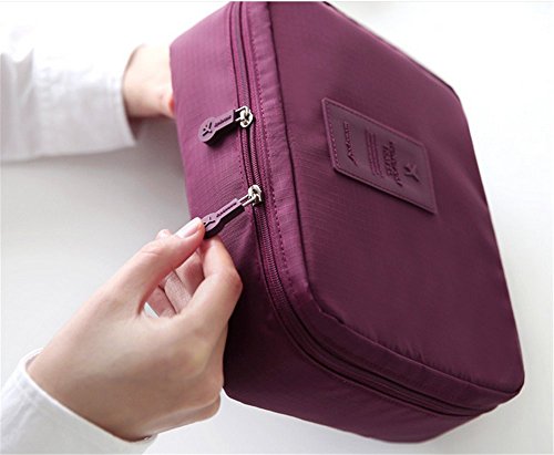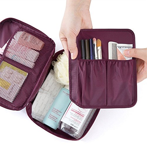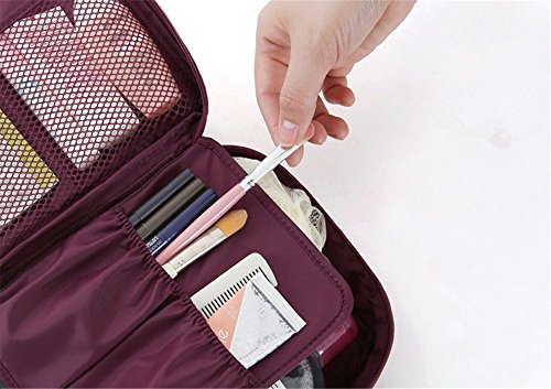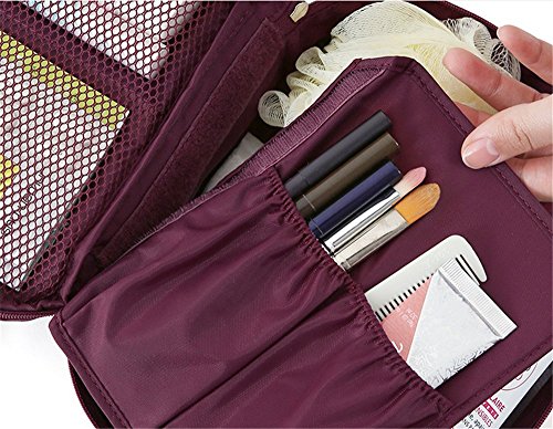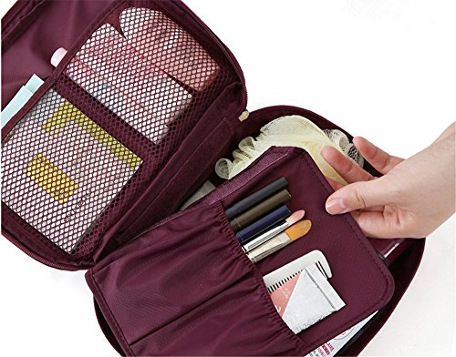 SOULFASHION Multi-function Portable Travel Wash Bag Nylon Make Up Cosmetics Bag Case Toiletry Organizer Storage Pouch (Wine Red)