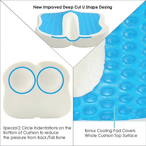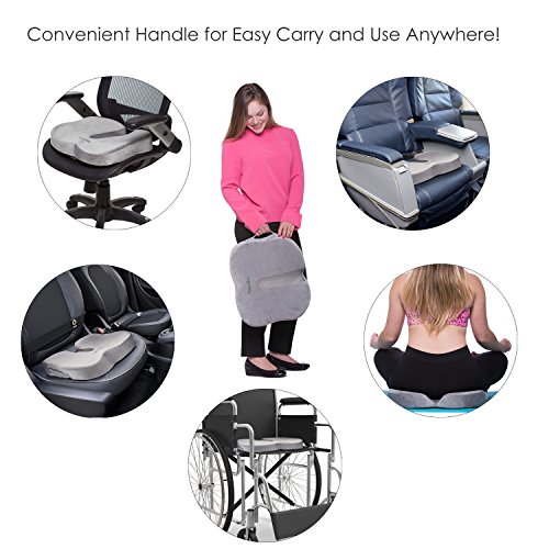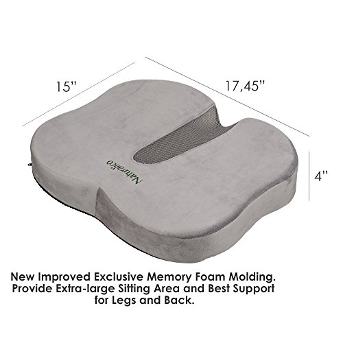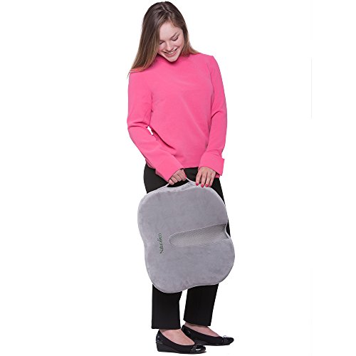 Don't be a slouch when it comes to spinal health Proper sitting posture is critical to whole-body health. It makes breathing and circulation easier, and it relieves stress on ligaments and joints. The Naturalico Memory Foam Seat Cushion is specifically designed to target those areas where your body is most susceptible to pain and pressure when seated. With innovative cut-outs that reduce hip and lower-back pressure and help your spine relax, the Naturalico Cushion is ideal for those looking to avoid back pain onset, as well as those seeking relief from back conditions. We surpass all competitors in support and comfort Our exclusive design includes a deeper inset at the back of the cushion for maximum tailbone comfort, and greater height at the front edge for enhanced sitting support at your legs. Two concave insets below your hips and waist reduce stress, as well, and a cooling gel panel regulates temperature to prevent sweating. Our naturally hypoallergenic cushion boasts a slate-grey cover that zips off for easy cleaning. Customer Satisfaction is our top priority We insist on the highest quality materials and craftsmanship to bring you this deluxe orthopedic seat cushion. We confidently offer a Lifetime Warranty against manufacturing defects, Lifetime Warranty, Money Back Guarantee. In the unlikely event that our product does not perform as promised, return it for a 100% refund of you purchase price. Don't sit idly by with lower-back or coccyx pain. Add the Naturalico Memory Foam Seat Cushion to your cart today. 0 |