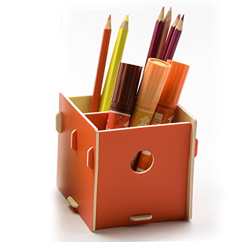Office Desk Organizer Makeup Cosmetic Brushes Holder Storage Box, DIY Desktop Supply Storag Pen/Pencil Holder Container (Orange)